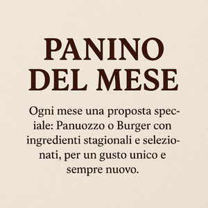 Ogni mese una proposta speciale: Panuozzo o Burger con ingredienti stagionali e selezionati, per un gusto unico e sempre nuovo.